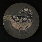 Grand plat circulaire sur talon à décor d'un oiseau ayant mangé des insectes