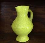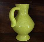 Poterie Pol CHAMBOST Pichet en céramique émaillé craquelé jaune citron à panse angulaire, col évasé à bec, intérieur noir Signé en creux, et n° 835 , vers 1955 H 25