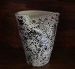 Mado JOLAIN (1921-2019) Vase tronconique en céramique émaillée blanche tachetée noir à enfoncement et quatre perforations Monogrammé sous la base H : 19 cm