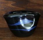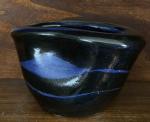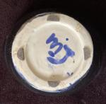 Mado JOLAIN (1921-2019) Vase à panse aplatie Emaillé noir et bleu sur fond noir Monogrammé en bleu, vers...