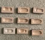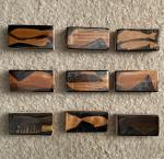 Mado JOLAIN (1921-2019) Série de neuf couteaux en terre cuite à décor de poissons émaillée Provenance : galerie A Rebours (Favardin) 8 x 4 cm