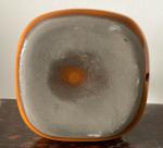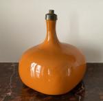 Jacques et Dani RUELLAND (1926-2008 et 1933-2010) Bouteille montée en pied de lampe en terre au manganèse émaillée orange à section carrée vers 1960 H.: 13 cm signé