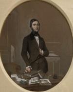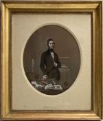 Romain CAZES (1810-1881) Portrait d'homme Dessin rehaussé de pastel signé vers la droite, à vue ovale 46 x 38 cm à vue