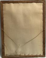 FIXE SOUS VERRE représentant un cavalier terrassant un dragon, inscriptions arabes en haut à gauche 79 x 58.5 cm à vue (usures)