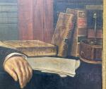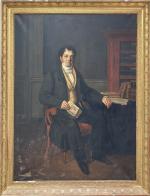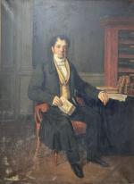 ECOLE FRANCAISE début XIXème Portrait d'un raffineur nantais recevant un pli dans son bureau, 1829. Huile sur toile signée et datée en bas à gauche 187.5 x 138.5 cm (restaurations anciennes, usures et frottements)