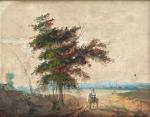 ECOLE FRANCAISE du XIXème Cavalier dans un paysage Aquarelle portant une signature F. Ziem en bas à gauche 31 x 40 cm à vue (nombreuses traces d'humidité)