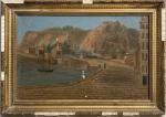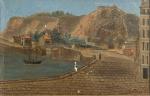 Amélie PARENTEAU (XIX-XXème) Le port Huile sur toile signée en bas à droite, annotée "Cherbourg" au dos 27 x 40.5 cm (manques)