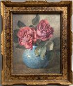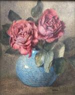 MARIEL (XXème) Bouquet de roses dans un vase Aquarelle signée en bas à droite 25.5 x 20.5 cm à vue