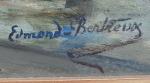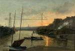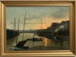 Edmond BERTREUX (1911-1991) Nantes, coucher de soleil sur la Loire Huile sur isorel signée en bas à droite 44 x 64 cm à vue