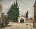 Charles HOMUALK (XXème) Nantes, le cimetière Miséricorde, 1926. Huile sur carton signée et datée en bas à gauche 37.5 x 46.5 cm (accidents)