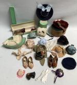 Lot de coiffes, chapeaux et divers accessoires pour poupée de mode