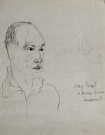 Max JACOB (1876-1944) Portrait d'homme, 1935. Dessin signé, situé Lausanne, daté et dédicacée "à son ami Liévin" en bas à droite 27 x 21 cm (pliures, légères piqûres et crayon)