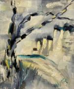 Michel PATRIX (1917-1973) L'arbre mort et la mer Huile sur toile signée en bas à droite, titrée au dos 46 x 38 cm