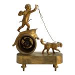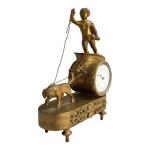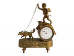 PENDULE AU CHAR en bronze représentant un ange guidant son char tiré par un chien XIXème H.: 19.5 cm