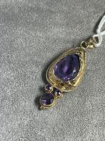 PENDENTIF or et améthystes poids 8 g haut 4,8 cm