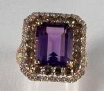 BAGUE à pans coupés en or rose ornée d'une Importante améthyste de taille émeraude calibrant 4.30 carats dans un double entourage de diamants bruns pour 1 carat et de diamants ronds taille moderne pour 0.50 carat, poids 4g80