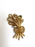 BROCHE bouquet en or jaune sertie de17 diamants et émeraude Travail des années 40-50 poids brut 40 g haut 7 cm