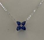 COLLIER en or blanc orné de 4 Saphirs taillés en poires stylisant une fleur pour 1.85 carats et centré d'un diamant rond calibrant 0.10 carat, poids 1g90 Fermoir anneau ressort