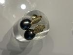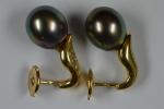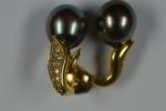 BOUCLES d'oreilles perles baroque Tahiti or et petits diamants poids 7.2 g systèmes alpa