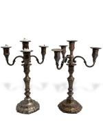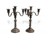 Paire de CANDELABRES en bronze argenté à quatre bras de lumière chacun H.: 39 cm