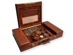 Nécessaire de toilette en écaille, vermeil, cuir et verre, au chiffre du duc d'Harcourt