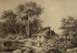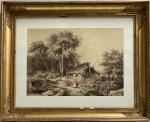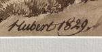 Jean-Baptiste Louis HUBERT (1801-1865) Paysage, 1829. Lavis signé et situé en bas à droite 49.5 x 70.5 cm à vue (piqûres, mouillures)