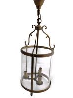 LANTERNE ronde en laiton et verre, à trois bras de lumière H.: 54 cm (électrifiée)