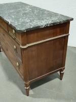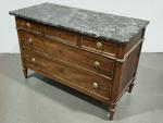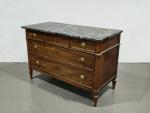 COMMODE en bois naturel, ouvrant à trois tiroirs en façade, dessus marbre Style Louis XVI, XIXème H.: 83 cm l.: 128 cm P.: 60 cm