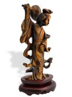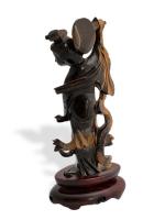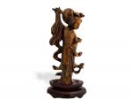 CHINE Sujet en quartz brun représentant une femme dansant H.: 17 cm (présenté sur un socle en bois)
