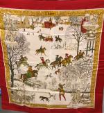 HERMES Paris " L'Hiver " par Ledoux Carré en soie imprimée. 90 x 90 cm, taches en bordure