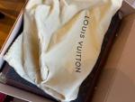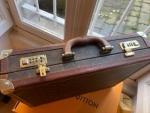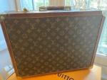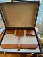 Louis VUITTON Malette/attached-case en toile monogram, les arêtes gainées de cuir surpiqué et monogrammé, deux serrures à code. Poches et accessoires en cuir naturel. Etat moyen 43,5 x 34,5 x 10,5 cm