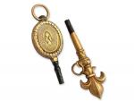 Deux CLES DE MONTRE en or, à décor d'un médaillon pour l'une et d'une fleur de lys pour l'autre, poids brut 4,8 g