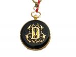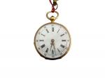 MONTRE DE COL en or dos plaque d'onyx chiffré, mécanisme signé "Doucet à Paris rue de Rivoli", poids brut 28,3 g diam 3 cm avec clé