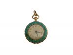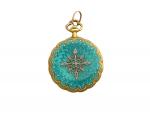 MONTRE DE COL or décor en émail turquoise et applique XIXe siècle, poids brut 24 g (usures) Diam 3 cm