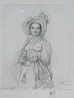 d'après Jean Auguste Dominique INGRES (1780-1867) gravé par Jean CORABOEUF (1870-1947) Madame Lavergne Estampe 36 x 25.5 cm