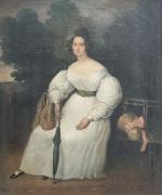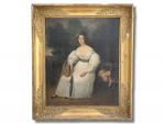 ECOLE FRANCAISE du XIXème Portrait de dame dans son parc Huile sur toile 42.5 x 52.5 cm (restaurations)