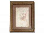 ECOLE du XIXème Portrait de dame Dessin, porte un cachet en bas à gauche 30 x 20.5 cm (pliure, piqûres, petits trous)