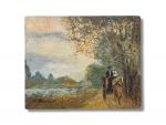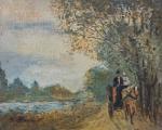 Paul FLAUBERT (1928-1994) La calèche sur le chemin de halage Huile sur panneau signée en bas à gauche 19 x 24 cm
