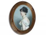 ECOLE FRANCAISE circa 1900 Portrait de dame Pastel ovale 58.5 x 43.5 cm à vue (déchirures)