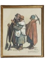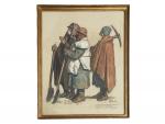 Georges Paul ROUX (1877-1957) Etude de personnages, 1926. Dessin rehaussé d'aquarelle et gouache avec mise aux carreaux, signé, daté et avec envoi en bas à droite 39.5 x 30 cm à vue