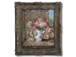 ECOLE FRANCAISE Vase de fleurs Huile sur toile 55.5 x 46.5 cm (restauration)