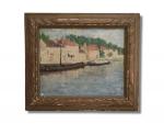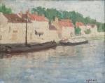 Germaine HEBRARD (1889-?) Bateaux sur le canal Huile sur toile signée en bas à droite 33 x 41 cm