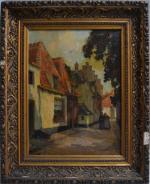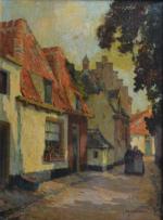 Gerardus Johannes DELFGAAUW [hollandais] (1882-1947) Personnages dans le village Huile sur toile signée en bas à droite 60 x 45 cm (petite restauration)