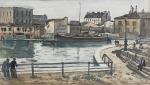Louis Robert ANTRAL (1895-1939) Les quais Aquarelle signée en bas à gauche 27 x 45 cm à vue