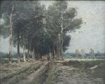 ECOLE début XXème Paysage arboré Huile sur panneau signée en bas à droite 21.5 x 27 cm