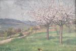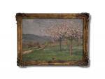 Hélène COLIN-LEFRANCQ (1878-1968) Verger en fleurs Huile sur toile signée en bas à gauche, étiquette d'ancienne exposition...