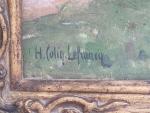 Huile sur toile signée en bas à gauche, étiquette d'ancienne exposition en bas au centre