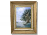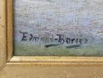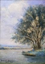 Edmond BORIES (1857-1926) Paysage à la barque Huile sur panneau signée en bas à gauche 27 x 20 cm