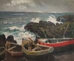ECOLE du XXème Ile de la Réunion, bateaux de pêche à Sainte Rose Huile sur toile située au dos 54 x 65 cm (toile distendue)
