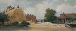 DAGOBERT (XXème) Battages à Clisson, 1949. Huile sur panneau signée et datée en bas à droite, contresignée, titrée et datée au dos 50.5 x 120.5 cm